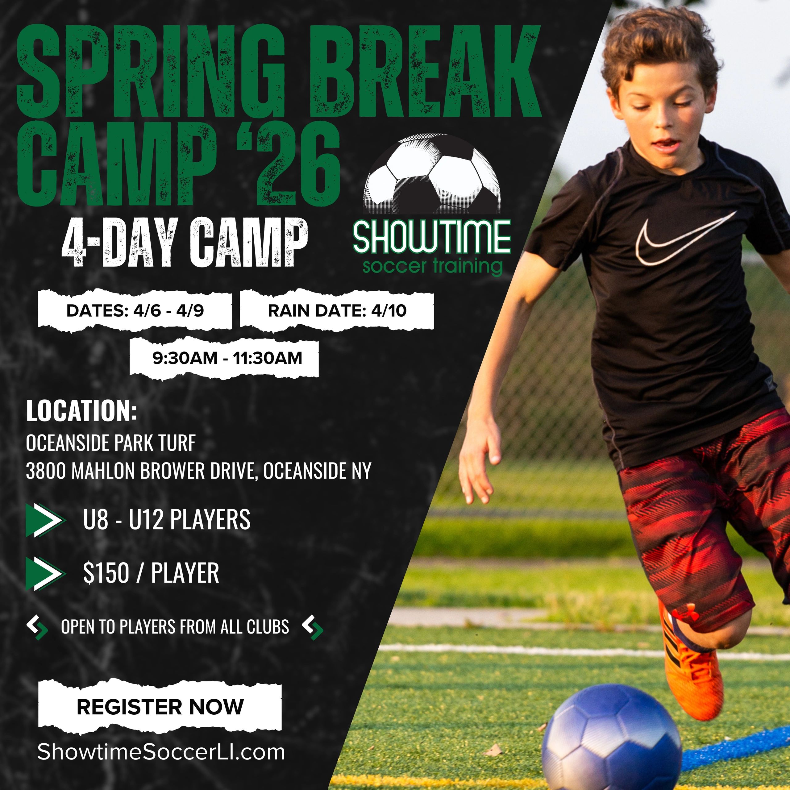 Stay sharp over spring break with a 4-day camp in Oceansid focused on fitness, ball skills, small-sided games, and fun competitive mini games.